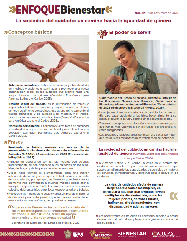 ENFOQUE Bienestar “La sociedad del cuidado: un camino hacia la igualdad de género”, Núm. 52, 21 de noviembre de 2025.